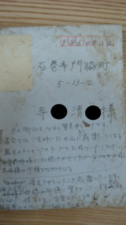 個人情報ですので、丸のところは伏字です。 手紙の宛名は「寺○清○」さん、女性の方です。 住所は石巻市門脇町となっています。 お心あたりののある方は阿部までご連絡ください。