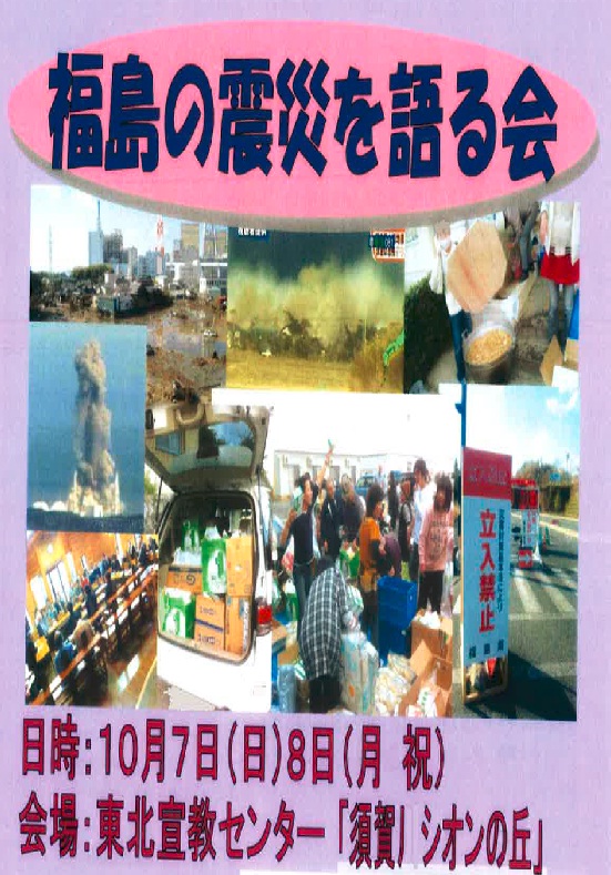 10月5日、「祈りと学びのつどい」が行われました。これは、宮城県宗教法人連絡協議会が主催社となり、公益財団法人世界宗教者平和会議日本委員会の協賛を得て開催されたものです。東北ヘルプ事務局長の川上が、日本基督教団東北教区宮城中地区の役員として、この催事に参加しました。以下、放射能という「見えないもの」への向き合い方を考えながら、その催事の報告をいたします。 会場は、浄土宗寺院・愚鈍院でした。催事は二部構成となっていました。第一部は「平和と復興の祈り」、第二部は講演「震災後の現状と課題」でした。多くの宗教団体から、100名を超える参加者があり、会場はちょうど人でいっぱいになりました。 第一部では川上が担当者となって映像と音楽を編集・放映し、震災直後から現在に至るまでの様子を共に振り返りました。そして、天理教と浄土宗の雅楽合奏を背景に、浄土宗の皆様が導師として登壇し、祈りを奉げてから、参加者全員で黙祷しました。 第二部は、富岡町にある浄土宗浄林寺住職・早川光明さんが、被災直後から現在に至る福島の様子を語ってくださいました。 富岡町は、原発爆発事故現場から20キロ圏内にあり、強制退去区域となっています。退去の当日のことを、早坂さんは生々しく覚えておられ、詳しく語ってくださいました。 富岡近辺の海は、長く津波を経験していなかったそうです。かつて「チリ地震」に伴う津波が東北を襲った時も、水は静かに引き、そして静かに戻ったということで、多くの方々が避難する思いを持てず、そして犠牲者が多く出た――それが、最初の悲劇だったそうです。 その後、原発爆発事故が起こります。そして、長い長い悲劇が始まるのです。 それはまるで、町から人が吸い取られるような、実に不気味で不思議な日であったそうです。福祉施設の責任者をしつつ住職の職を担っていた早坂さんは、まずご自分の施設の対応に追われたそうです。そして、檀家の皆さんの様子を確認して回ったところ、ちょうど臨終を迎えたお宅があったと言うのです。「すぐに帰れるだろう」という認識でいましたから、遺体を置いて避難する、と、一旦は決めてみたものの、やはり気になって、ご遺族は夜の内に自宅へ帰り、誰もいない町で一晩、ご遺体と一緒に静かに過ごしたのだそうです。 避難先は郡山市内の「ビックパレット」という体育館。館内はまさに「すし詰め」状態。そのうち、皆それぞれ各地へと離散して行く被災者。 各地へ離散したお檀家さんの中には、7~8回も引っ越しを余儀なくされた方が少なくないそうです。最初は快く招いてくれた親戚も、数日すると難しい顔をし始める。そうして次の避難先を探さざるを得なくなる。そうしてようやく定住先を見出したと思っても、今度は子供が地域でいじめられる。耐えきれず、結局福島へ戻ってくる方もある。 そして、震災後、実に多くの人が亡くなっている現実を、早坂さんは語りました。早坂さんは僧侶として、震災前、年間約10件の葬儀を行うのが常であったそうです。そして震災があり、津波で亡くなった7人の葬儀を行った。しかしその後、一年半の間に、31件の葬儀を行うことになった――「次々と、人が亡くなるんです」「日々人々は憔悴の色を深めています。先日は60代の元気だった人が大動脈解離で亡くなる。別の60台の人は慢性呼吸器不全で亡くなる。それぞれ99歳と88歳の父親を遺して亡くなる。残された父親の無念を思うと、言葉も出ないのです。」そう、早坂さんはおっしゃいます。 そして早坂さんは、次のような言葉を語られました。 「今のたうちまわっている人がいる。もし宗教がその人を救えないようなら、そんな宗教は要らない。」 この早坂さんの言葉を聞いて、私は「輝かせたい憲法第九条」と題された9月29日のシンポジウムを思い出しました。シンポジストの田中徳雲さん(曹洞宗・同慶寺住職)の言葉と同じ響きがそこに聞き取れたからです。そして、そこに私たちが今しなければならないことが示されているように思いました。 早坂さんは、ご自身が避難生活を送るかたわらで、「原発事故被災寺院有志の会」事務局長として活動を開始します。東京に足繁く通い、東京電力の方々と折衝し、国会でのロビーイングを行う。すべて、被災者の生活を支えるためです。「この国の指導者に、使命感も責任感もないのではないか?」という深い疑いを日々強めている、という言葉が印象に残っています。そうした現実に対峙して、早坂さんは戦っているのです。 南相馬の二の寺院を預かる田中さんは、これと対照的に見えます。離散して寄る辺なくなった一人一人を訪ねて回り、月に一度は同慶寺(原発爆発事故現場から20キロ圏内)に皆で集まって、掃除を行う。「それは心の掃除なのです」と、田中さんは静かにそう言っていました。 被災の現実と戦う早坂さん。被災者と共に被災地に佇む田中さん。 私たち周辺にいる宗教者は、何ができるでしょ
